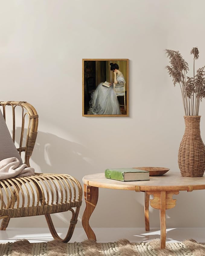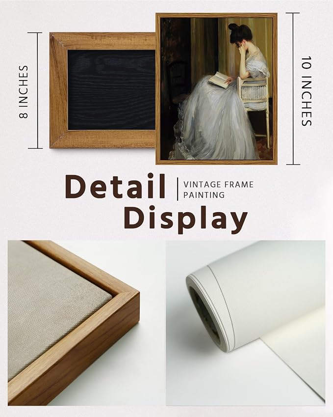 - VINTAGE OIL PAINTING: The portrait wall art is a beautifully executed painting that combines realism with subtle impressionistic touches to create a serene and intimate scene. The retro frame enhances the artwork's elegance, making it a striking and valued piece. The wall decor painting's focus on a solitary woman reading in a quiet, warmly lit space evokes themes of contemplation, solitude, and intellectual engagement, making it a timeless and evocative work of art.