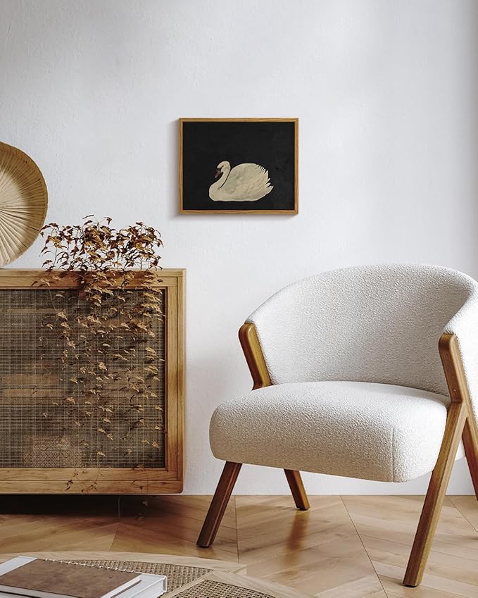 - VINTAGE SWAN OIL PAINTING: Elevate your living space with VIYYIEA swan art canvas wall decor. The swan is gracefully floating on a dark background that accentuates the purity and elegance. The frame around the swan wall art painting adds a sense of classic sophistication. The combination of the black and the luminous swan creates a striking contrast, highlighting the serene beauty of the bird, making it a timeless captivating piece.