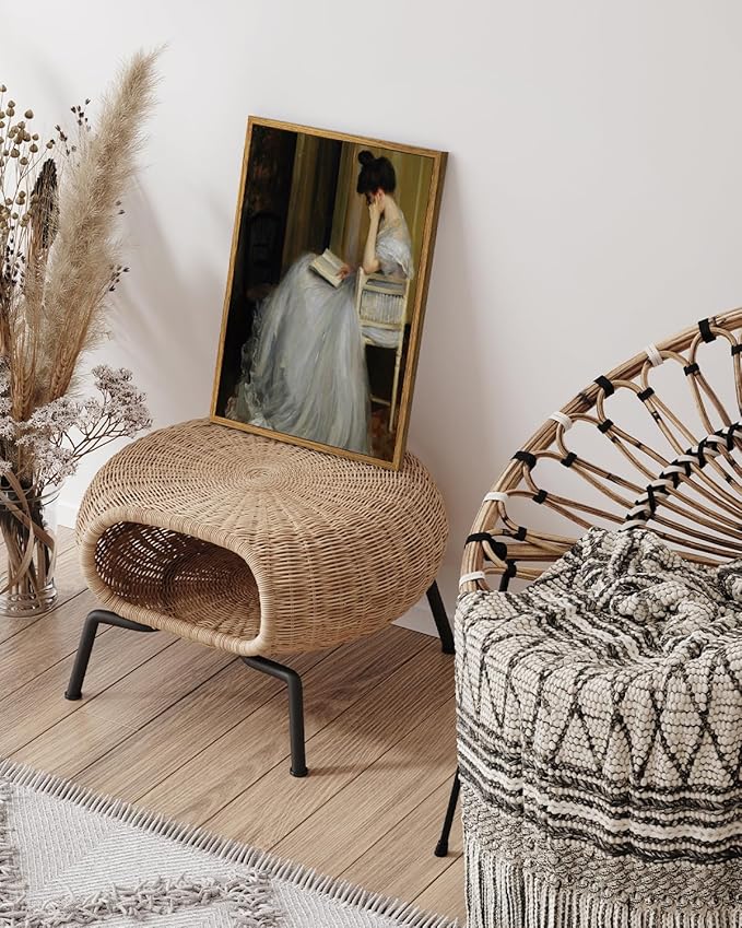 - VINTAGE OIL PAINTING: The portrait wall art is a beautifully executed painting that combines realism with subtle impressionistic touches to create a serene and intimate scene. The retro frame enhances the artwork's elegance, making it a striking and valued piece. The wall decor painting's focus on a solitary woman reading in a quiet, warmly lit space evokes themes of contemplation, solitude, and intellectual engagement, making it a timeless and evocative work of art.