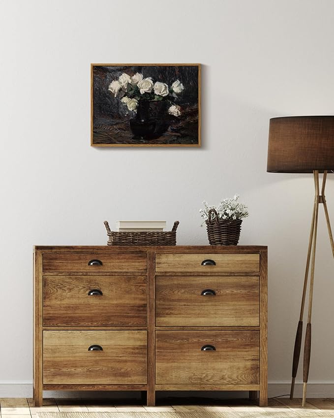 - CLASSICAL WALL ART HOME DECOR: This vintage flower oil painting transports us to a bygone era, where the timeless beauty of nature takes center stage in a masterful display of artistry. These classic artworks capture the essence of a romantic and nostalgic time, allowing us to savor the enduring beauty of white roses life as seen through the eyes of talented artists from the past.