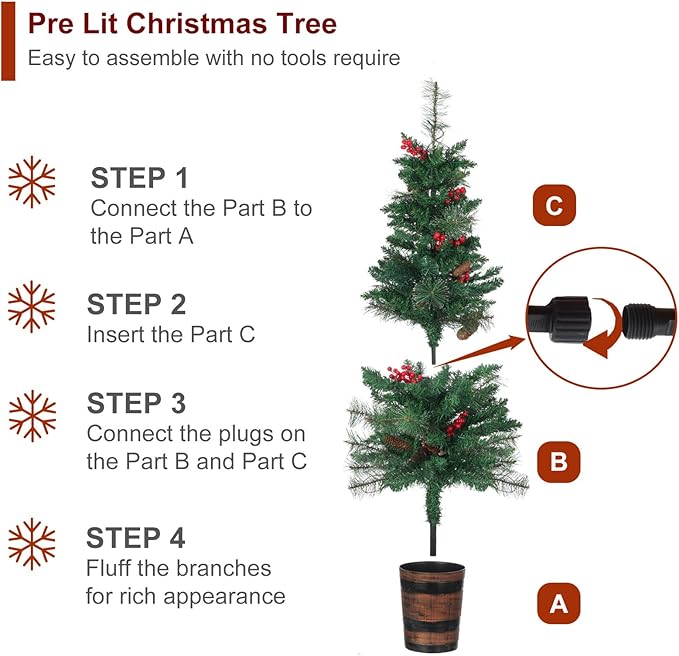 - Easy Assembly: Simply insert the bottom part of the tree into the planter, then attach the top part of the tree. Connect the plugs on the two parts of the tree, then press the “ON” button on the battery box, easily fluffing the branches for great shape