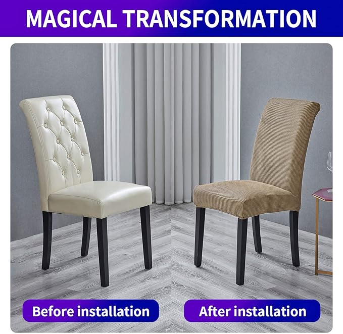 Howhic Stretch Chair Covers for Dining Room Set of 8, Removable Washable Dining Room Chair Covers, Dining Chair Slipcovers Seat Protector, Great Decor for Home and Banquet (Tan, 8 Pack)