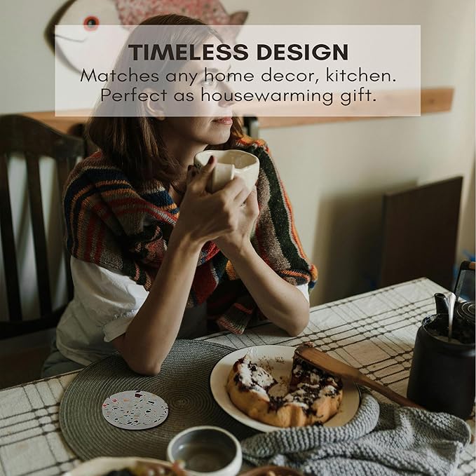 - Thoughtfully Designed: The absorbent coasters for drinks comes with anti-slip cork & superior absorbent ceramic top. This cup mat is perfect for farmhouse coffee table decor or any modern home decor.
