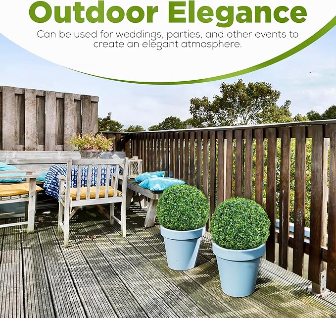 - VERSATILE DECORATIONS – Enhance any space with our high-density, faux boxwood balls. Perfect for the home, porch, or garden, they add low-maintenance greenery anywhere. Each measures about 16” in diameter.