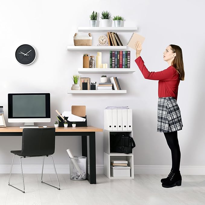 - Free Up Space in Your Home & Kitchen: Reduce clutter and highlight bedroom decor - These shelves for wall storage give the illusion of a larger space in a studio apartment, dorm room, or small living quarters - Easily modify your floating wall shelves to fit your needs - Display succulent plants, collectibles, trophies, photos, frames, and books