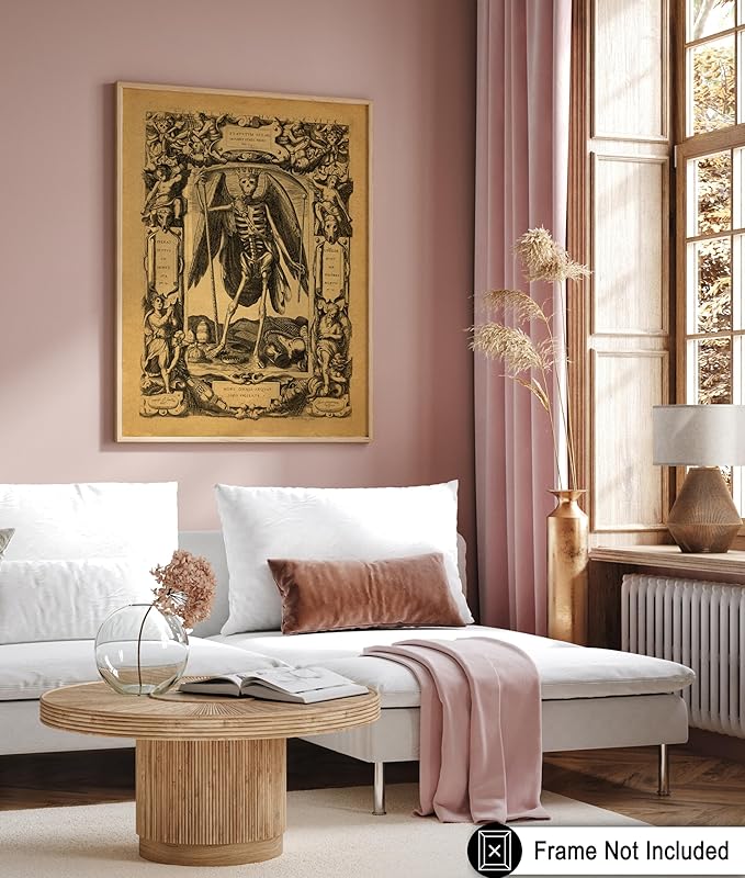 Poster Master Vintage Medieval Poster - Retro Gothic Print - Gift for Artist, Friend - Angel of Death, Memento Mori, Life, Skeleton, Dark - Wall Decor for Home, Living Room, 18x24 Unframed Wall Art