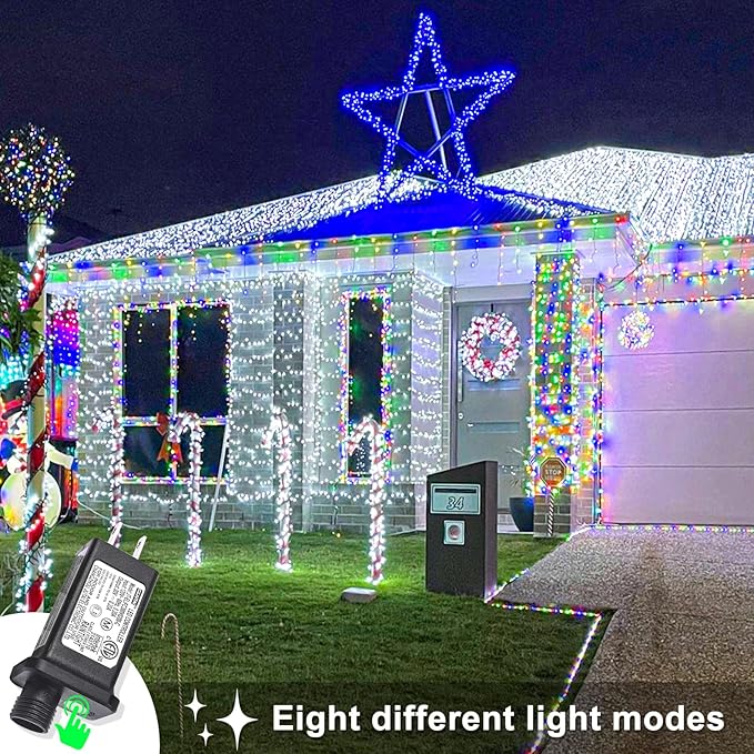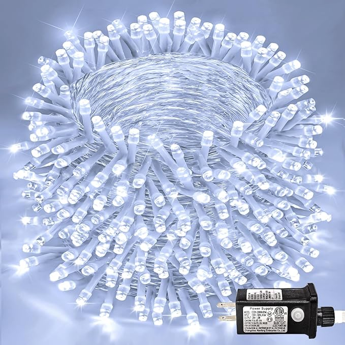 - Waterproof Fairy Lights Plug in: The white Christmas lights design with IP44 outdoor waterproof, can withstand wind, snow, rain and extreme weather. String lights are equipped with a UL certified 29V low-voltage plug ensures the safety. It's safe for family with kids or pets!