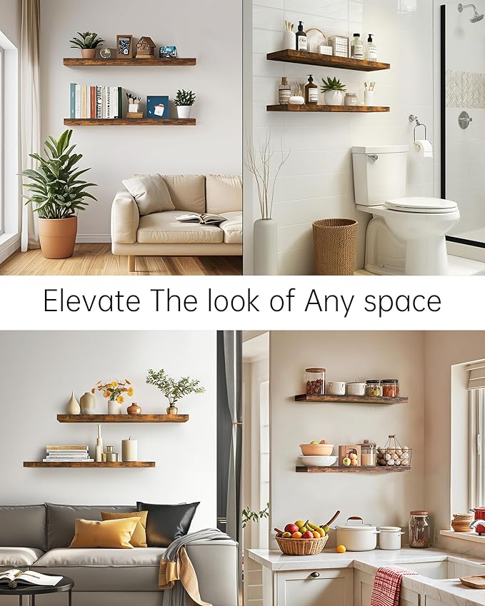 BAYKA Floating Shelves for Wall, 36 inches Long Wall Mounted Rustic Wood Shelves for Bathroom, Bedroom, Living Room, Kitchen, Office, Hanging Shelf for Books/Storage/Decor(Brown,Set of 2)