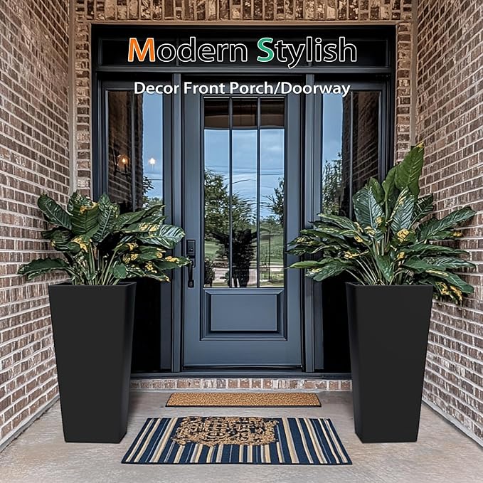 Tall Planters for Outdoor Plants, Large Resin Flower Pots for Garden, Front Porch, Patio, Indoor - Set of 2 (Black, 27.5 inch - 2 Pack)