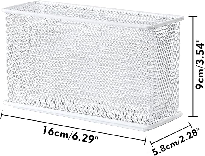White Magnetic Basket, Magnetic Shelf Pencil Holder for Refrigerator, Wire Mesh Magnetic Bin, Magnetic Organizer Whiteboard Desktop Storage, 6.29"x2.28"x3.54"