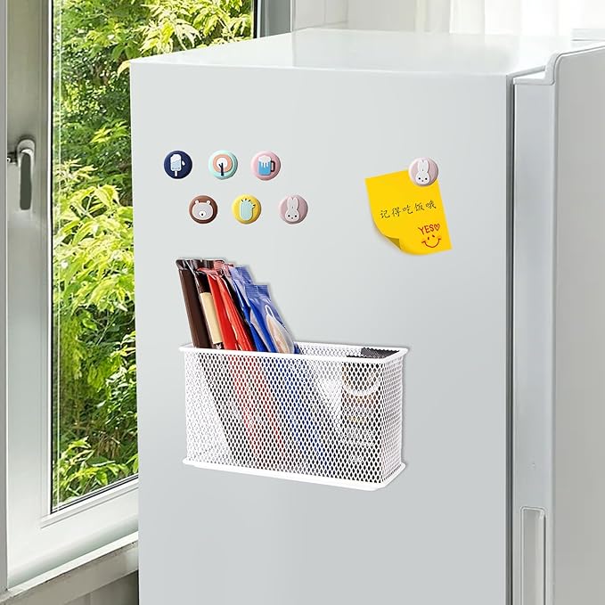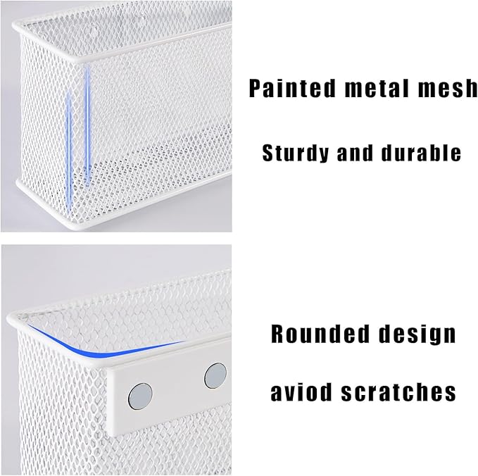 - Durable construction: This refrigerator magnetic storage basket is made of high-quality metal material and white finish, sturdy and durable