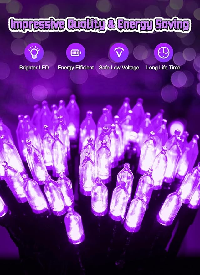 - Indoor Halloween Lights: Measuring 8 feet in length with 4-inch spacing between LED bulbs, these 20 purple twinkle lights are ideal for indoor Halloween decor. The 20-inch cable between the wire and battery box ensures easy placemen