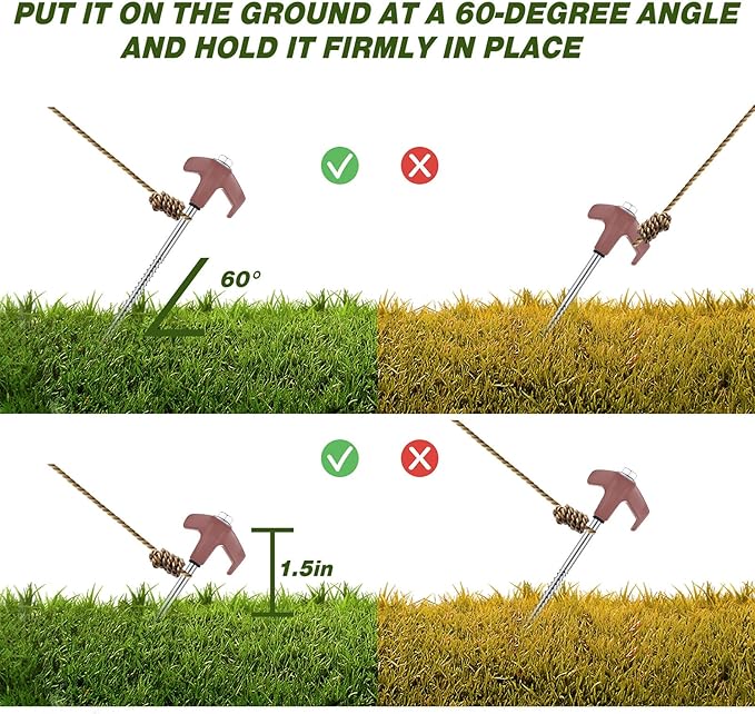 - Strong and Secure: our inflatable stakes heavy duty offer enough strength under windy conditions and are suitable for use in grass, dirt, harder soils and sand; They are important for taking care of your outdoor equipment; Pointed items are included, it is recommended to wear tool gloves to avoid injury when using, and please keep it away from kids