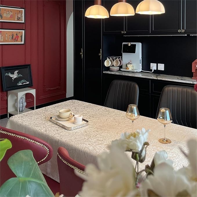 - Perfect Table Decor: If you appreciate both modern and vintage elements, this jacquard table cloth is a good choice for home decor. This rectangular tablecloth is suitable for various occasions, including dining tables, weddings, kitchens, gatherings, parties, picnics, cafes, living room, brunches, and buffets, whether indoors or outdoors, showcasing its elegant and practical characteristics.