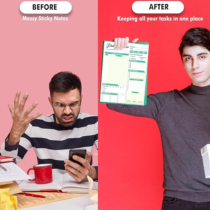 - ๐ To Do List Notepad- Durability: Thick pages are more resistant to wear and tear. They won't easily rip or crumple, even if you carry your notepad with you in a bag or backpack. This durability ensures that your planner remains intact throughout the year, allowing you to refer back to previous weeks' notes and goals.