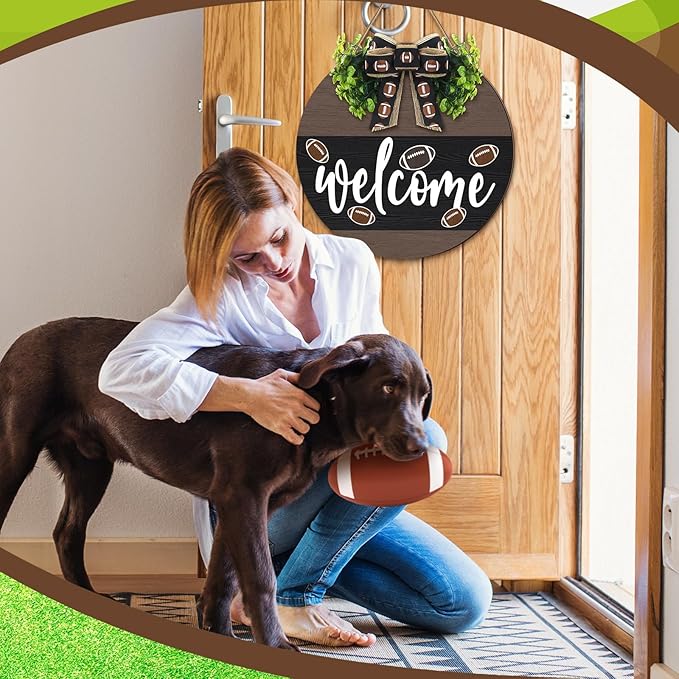 - Authentic Wooden Welcome Sign: crafted mainly from wood, this football door decor exudes a rustic charm; The material is durable and sturdy, ensuring the piece withstands the test of time; The football door sign has a string behind it for easy hanging