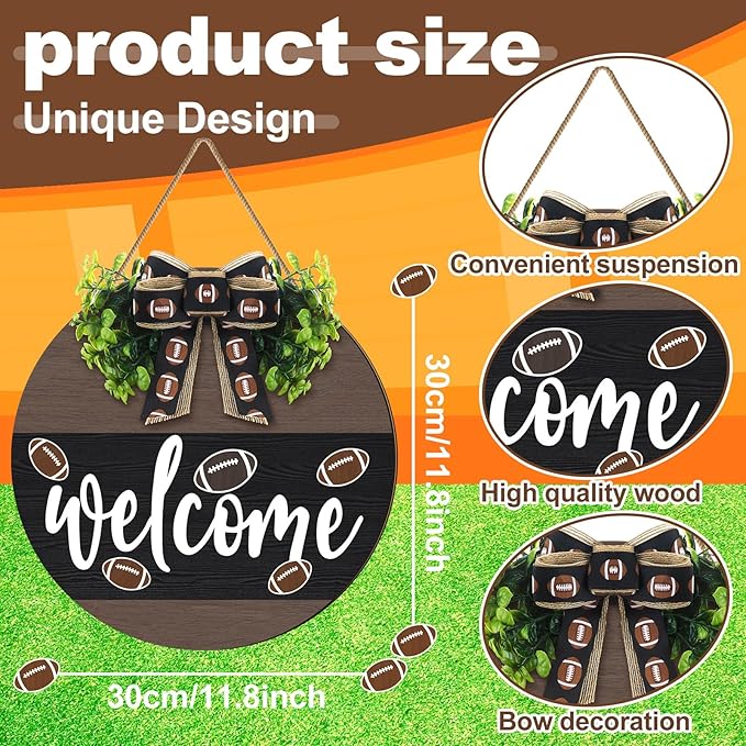 - Football Design: the football welcome wood sign is a visual treat; Its rich and vivid colors add liveliness to any ambiance as hanging decor; This brightly colored welcome wall decor enhances the mood and captivates those who gaze upon it; Its vibrancy brings about a festive and celebratory feel to any space, making it a lovely and cheerful decor piece