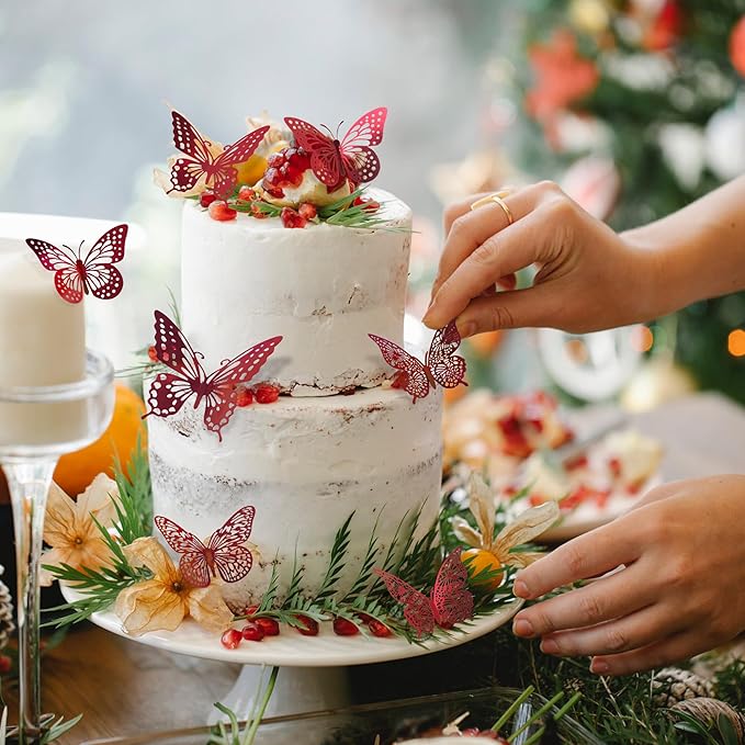 SAOROPEB 3D Butterfly Wall Decor - 48 Pcs, 4 Styles, 3 Sizes - Removable Stickers (Blood Red) for Birthday & Party Celebrations
