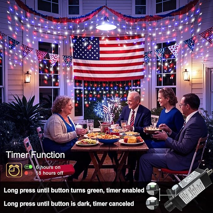 - 【Waterproof Independence Day's Decorations】The icicle lights are IP44 waterproof, making them perfect for outdoor use in conditions like rain and snow exposure. Designed for durability, they work reliably throughout the season. Note: Please keep the adapter away from water!