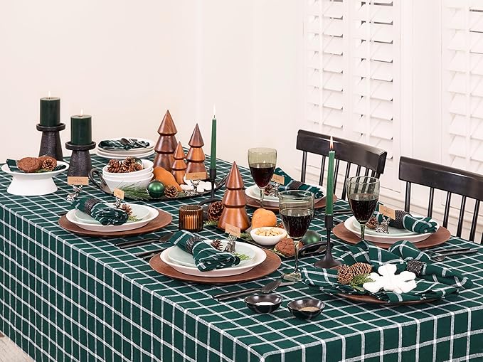 Solino Home Linen Tablecloth 60 x 90 Inch - 100% Pure Linen Windowpane Dark Green Table Cloth for Rectangle Tables - Machine Washable Tablecloth
