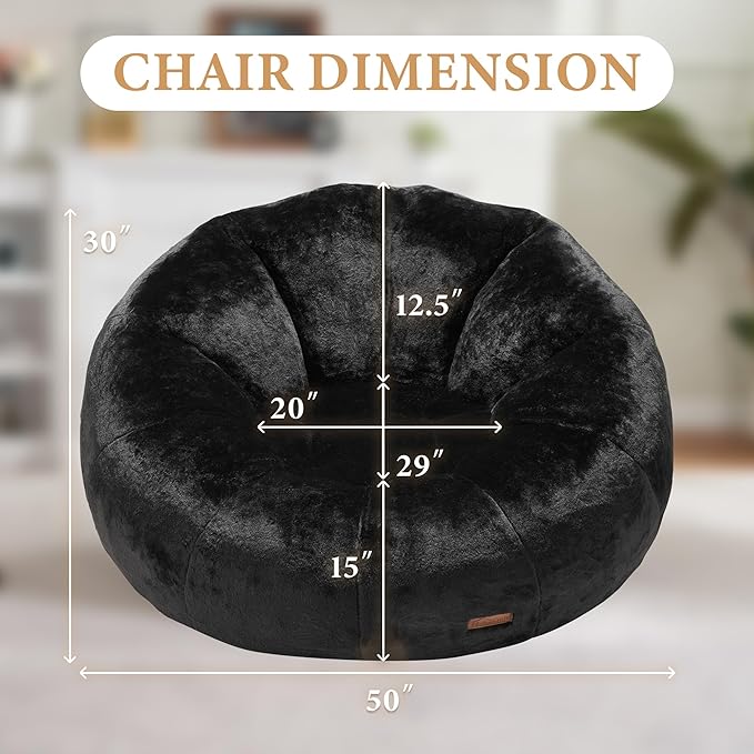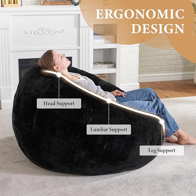 Hobestluk Bean Bag Chairs Large Bean Bag Couch for Adults Stuffed Sofa Chair Comfy Giant Bean Bag Chair with Spacious Design for Reading, Playing or Relaxing (Black)