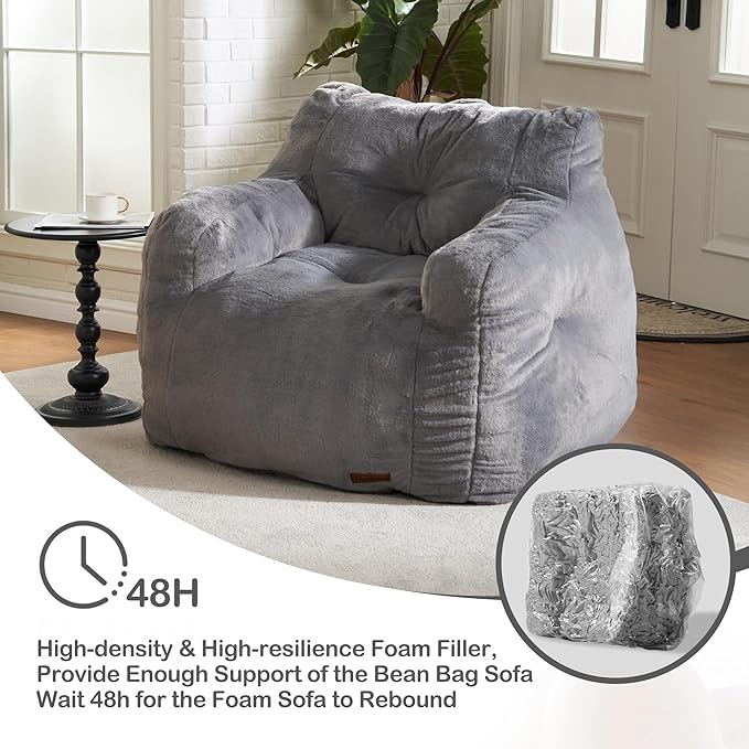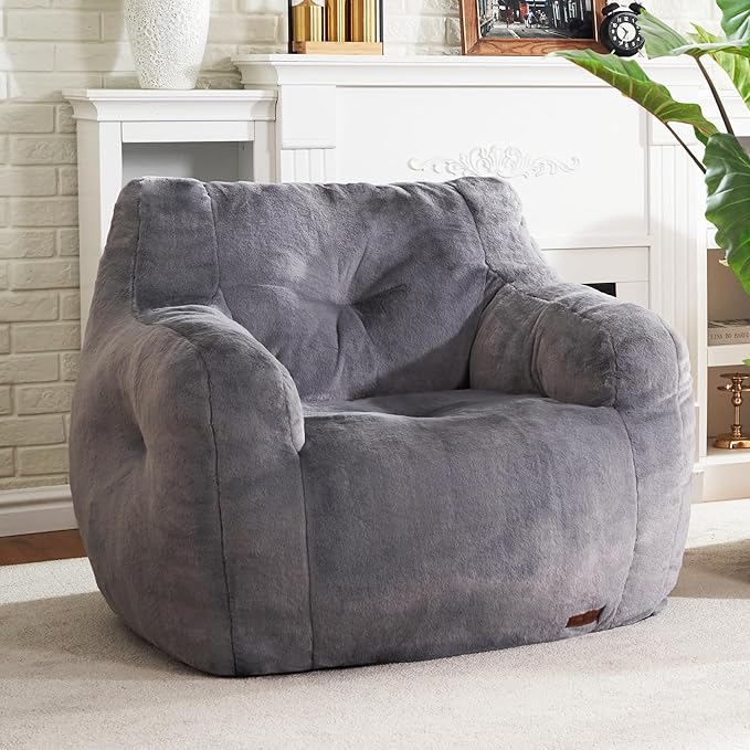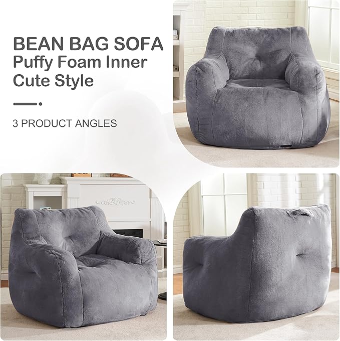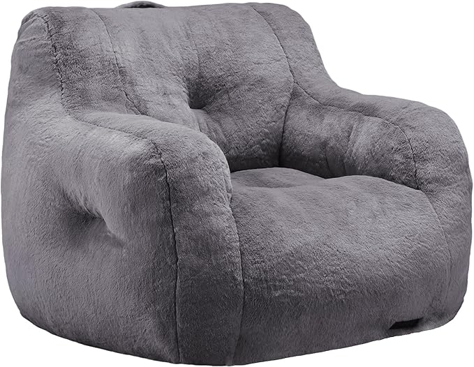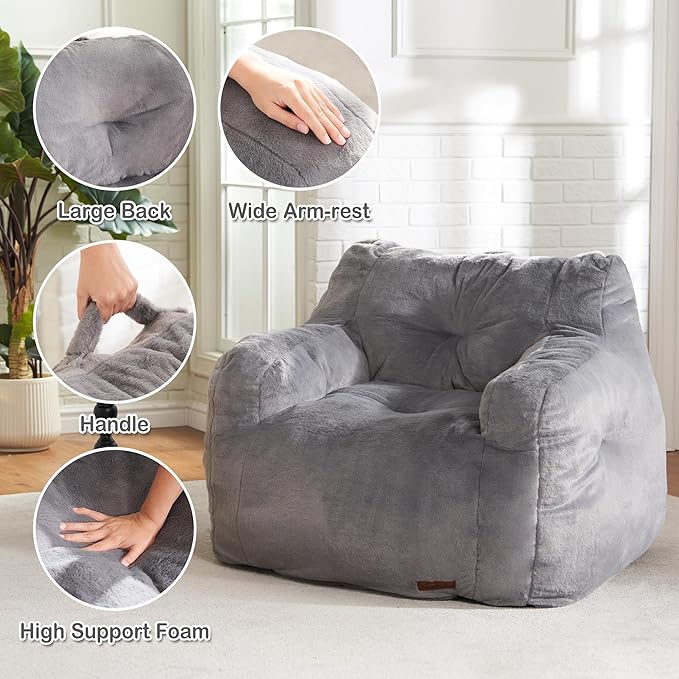 Hobestluk Bean Bag Chair for Adult Small Bean Bag Chairs with Arms Furry Beanbag Chair with Foam Filler Stuffed Bean Bag Sofa for Reading in Bedroom Living Room and Dorms(Grey)
