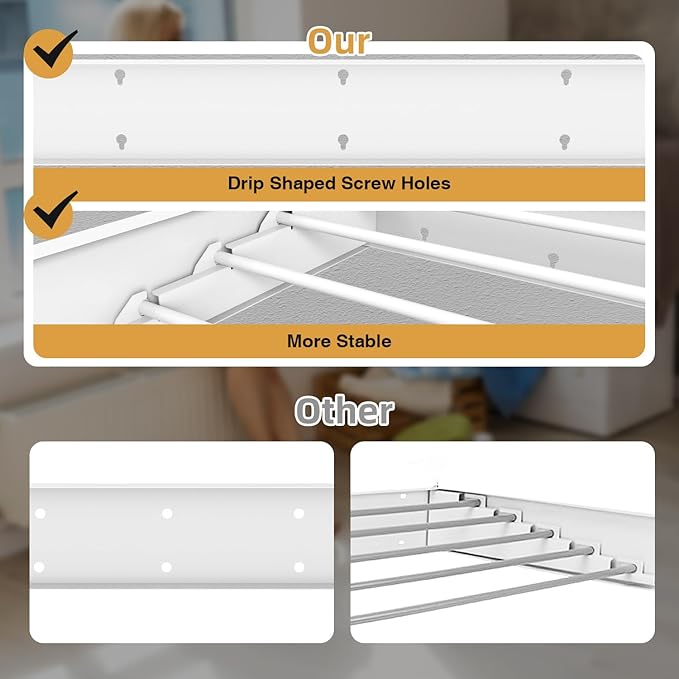 - Heavy Weight Capacity: Solid structure, main frame 1.4mm thick, strong bearing capacity and stability, rust-proof and wear-resistant. Foldable wall mounted clothes drying rack: 5 heavy aluminum rods, equivalent to 13.2 feet of linear suspension line, can withstand 60 pounds of weight. Use this expandable clothes hanger in your laundry and bathroom to create a flexible and convenient clothes hanging system.