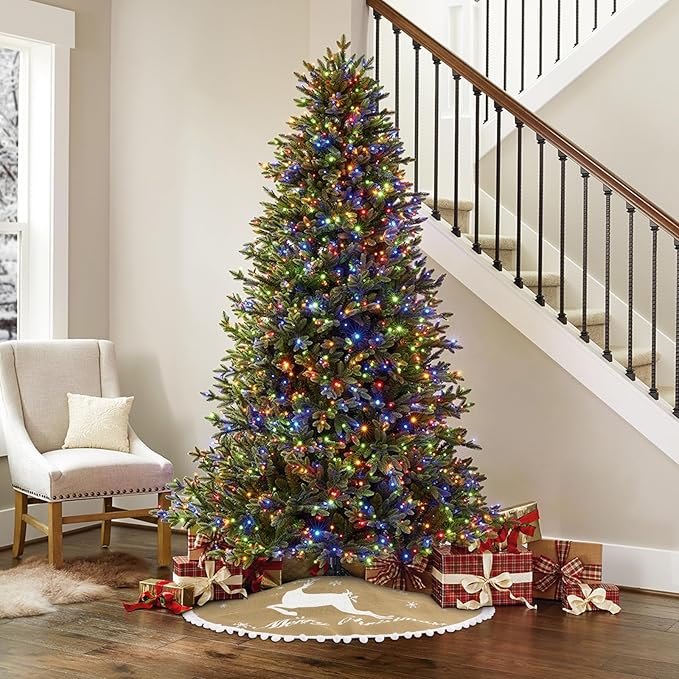 - Burlap Material Tree Skirt:This rustic tree skirt Christmas is made from natural burlap. The color has been safely treated to present a classic Christmas linen color. This fabric makes the Christmas tree skirt tough, durable, and environmentally friendly, and it will not pill. The tree skirt can be reused in subsequent years