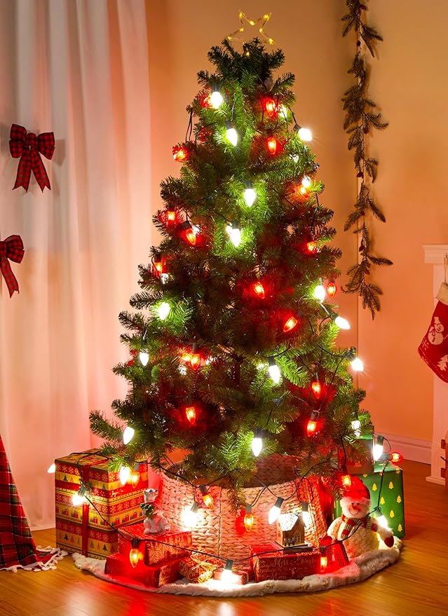- Replaceable & Removable Bulbs: Each C9 LED bulb works independently of the other(2 spare bulbs), so when one bulb goes out, the others will stay on without affecting the others.and can be unraveled for you to DIY your Christmas decorations; you can also change the position of the different color bulbs to your liking to create a beautiful scene and emit brilliant colors at night.