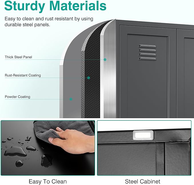 - Sturdy,Durable and Safe: Made of powder-coated steel plate,wide cabinet with door and shelf is sturdy,durable and easy to clean.Load capacity is up to 120lbs each shelf. The included anti-tip kit helps secure the pantry cabinets to the wall to give you a safer living space.