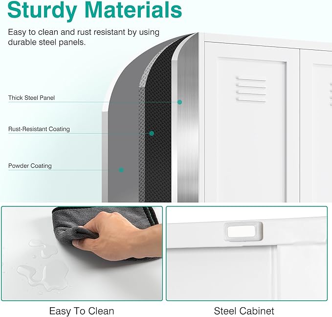 - Sturdy,Durable and Safe: Made of powder-coated steel plate, this white pantry cabinet is sturdy,durable and easy to clean.Load capacity is up to 120lbs each shelf. The included anti-tip kit helps secure the pantry cabinets to the wall to give you a safer living space.