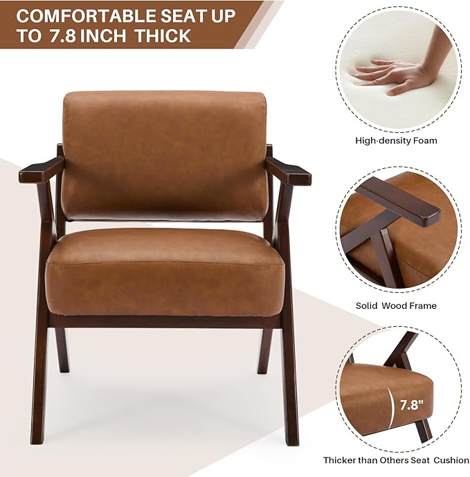 - PREMIUM FABRICS: This mid-century accent chair is made with faux leather fabric, and offers refined textures. Its leather not only provides comfort but also exudes a timeless elegance