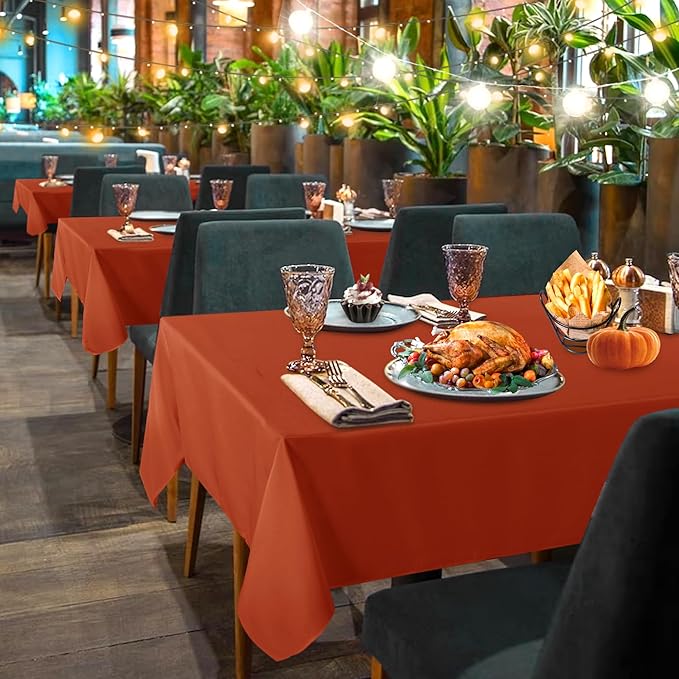 sancua 6 Pack Rust Tablecloth 60 x 102 Inch, Rectangle Thanksgiving Burnt Orange Table Cloth for 6 Feet Tables - Stain and Wrinkle Resistant Washable Polyester Table Cover for Dining Parties Camping