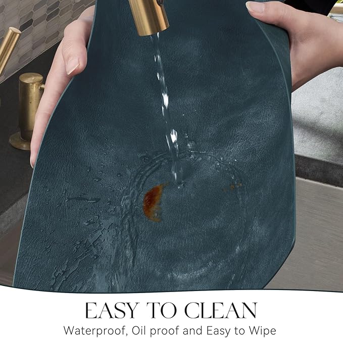 - HASSLE-FREE CLEANING: Our faux leather placemats are designed to be 100% waterproof to better protect the table from grease and grime compared to woven and fabric placemats. If the placemats get stained with sauce or food residue, simply wipe with a cloth or rinse with water.