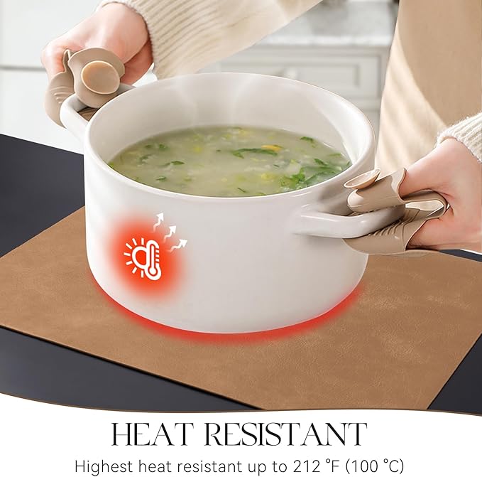 - PROTECT YOUR TABLE: Our placemats are 2mm thick and heat-resistant up to 212℉/100℃, which can protect your table from high temperatures and reduces noise from plates and flatware. It is an excellent choice to protect protect the surface of your dining table from hot dishes and liquid spills.