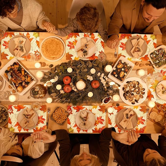 - AUTUMN MAPLE LEAF TABLE DECORATION:These maple leaf paper placemats with vibrant color and unique patterns.it can provide nice decorations effects for your dinner party and add a warm and festive atmosphere to your dinner.in addition, these disposable place mats will make it easy to clean up after the party.
