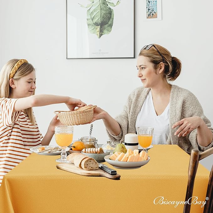 - Water Resistant & Easy Care: Featuring excellent water-resistant properties, this tablecloth ensures liquids and spills bead up on the surface. Simply wipe clean with a damp cloth for quick and effortless maintenance, making cleanup a breeze