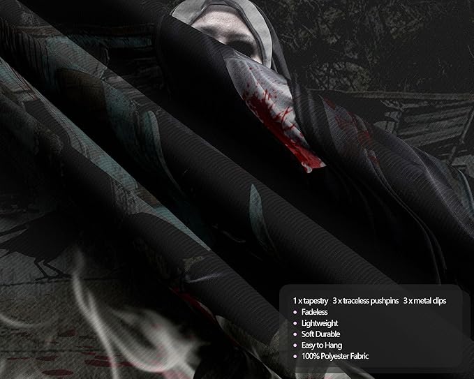QGHOT Halloween Tapestry, Gothic Horror Movie Tapestry Wall Hanging Spooky Halloween Backdrop Creepy Scary Nun Haunted House Wall Decor for Bloody Party Decorations (90.6"x70.9")