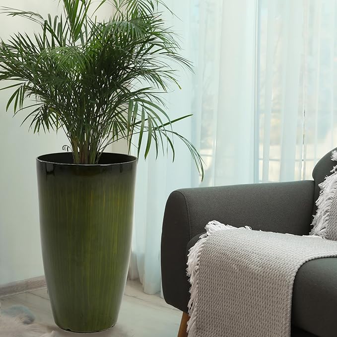 - DURABLE DESIGN: Made of weather-resistant plastic, these planters can withstand rain, sun and other outdoor elements while retaining their vibrant color and shine; These large plant pots are lightweight yet sturdy for indoor or outdoor decorative use