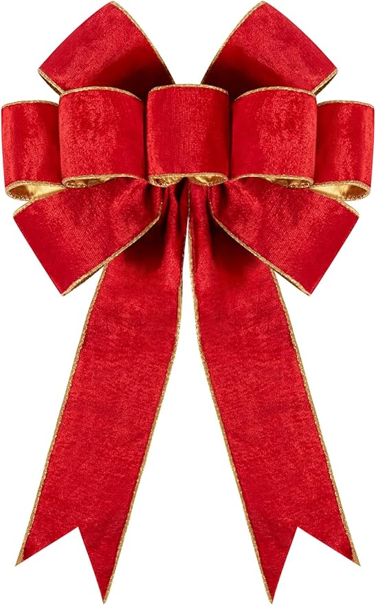 - Easy to Use: Our red large bows are made of Velvet with Golden Wire, you just need to take a little time and patience to adjust the bow slightly to make it full, then you can get a perfect Christmas bow, the wire in the ribbon makes it easy to shape and fluff the velvet bows