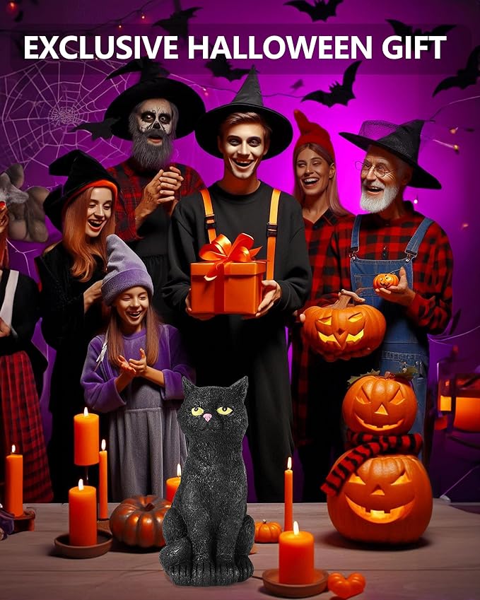 - Durable and Long-Lasting: Made from high-quality resin, the black cat figure is built to withstand the test of time, ensuring your garden decor remains spooky year after year.