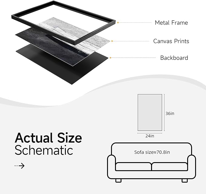 - [Framed Wall Art]: A large framed black and white abstract canvas wall art, size is 24x36 inches, each painting with a sturdy, rust-resistant frame