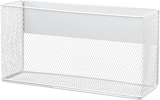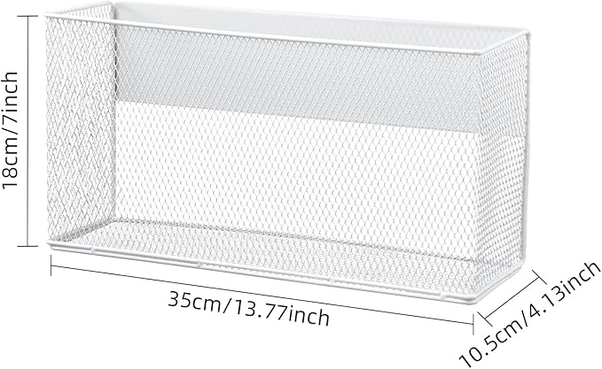 Magnetic Basket 13.77" x4.13" x7.08”,White Mesh Organizer and Holder for White Board and Refrigerator Magnetic Storage Bin Box Containers Organizer for Locker Accessories