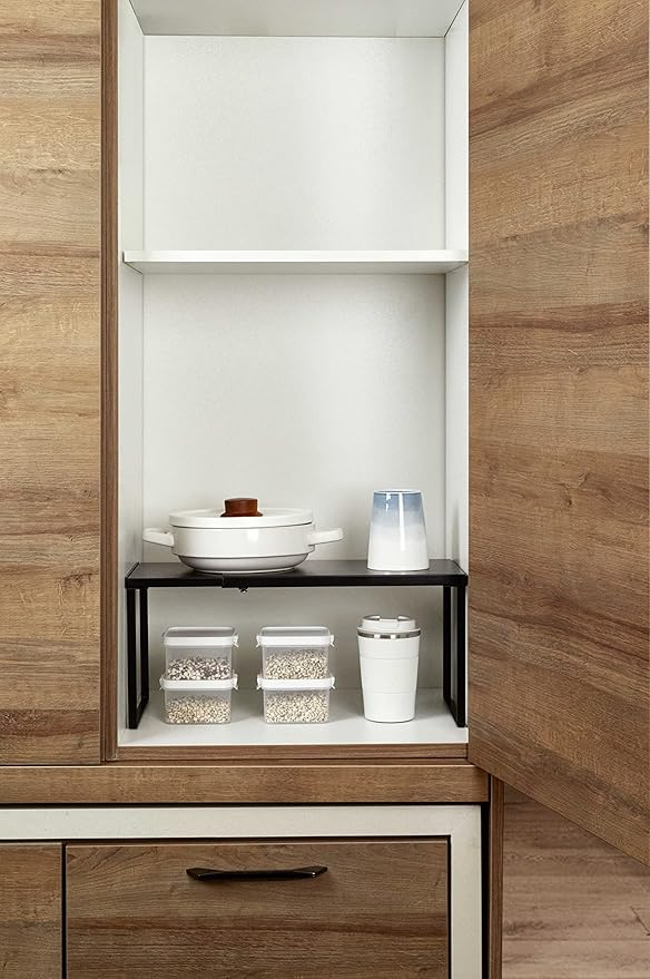 - FUNCTIONAL STORAGE: This cabinet shelf can be used in various scenes of your home including cabinets, pantry, cupboards, kitchens, studio, bathrooms, bedrooms, under sink and any counter surfaces. You may use the shelf as a storage organizer for plates, cups, dishes, pots, bowls, snacks, books, magazines and whatsoever.