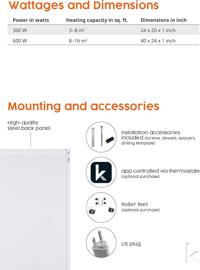 - SCOPE OF DELIVERY - Incl. mounting material & 5.9ft cable - This product is only suitable for well-insulated rooms or for occasional use. For optimal use, we recommend the use of a thermostat