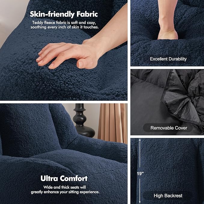 - Soft and Skin-Friendly Fabric: The soft sherpa teddy fabric provides a soft and skin-friendly texture, offering a warm ,fluffy and cozy feeling, especially during chilly days, creating a comforting embrace. The bean bag sofa combines aesthetics, comfort, and durability, providing you with the perfect seating experience to enjoy your time.