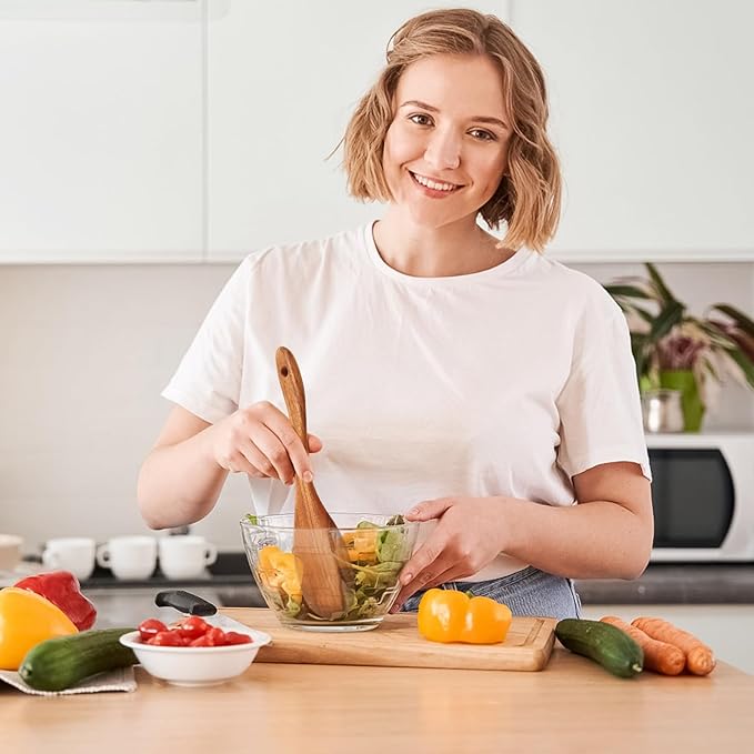 - 【Complete Your Kitchen with Ease】Our wooden cooking utensils set meets all your cooking needs. This versatile set saves you time and effort, eliminating the need for extra utensils. Durable, heat-resistant, and perfect for any cookware, it simplifies your cooking experience