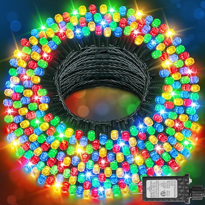 158 FT 480 LED Christmas Tree Lights, String Lights Green Wire with 8 Modes, Timer and Memory, Plug in Outdoor Waterproof Twinkle Lights for Indoor Yard Xmas Holiday, Multicolor
