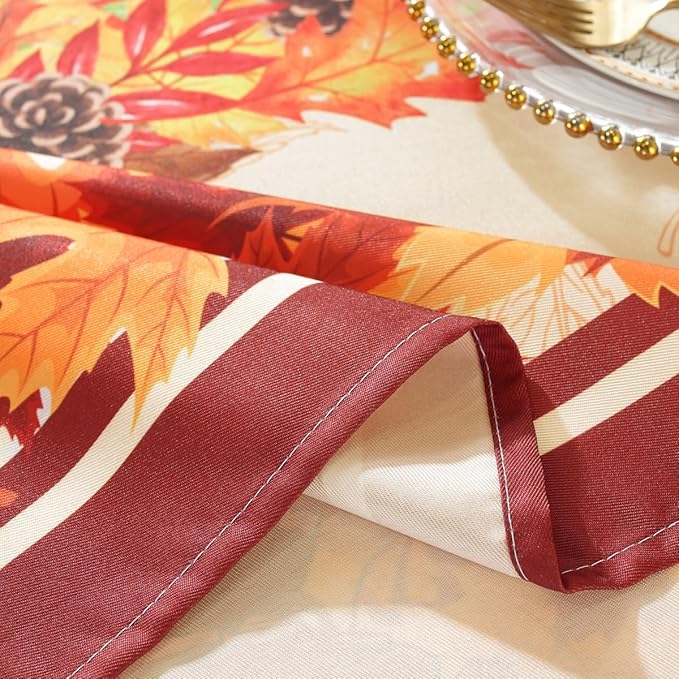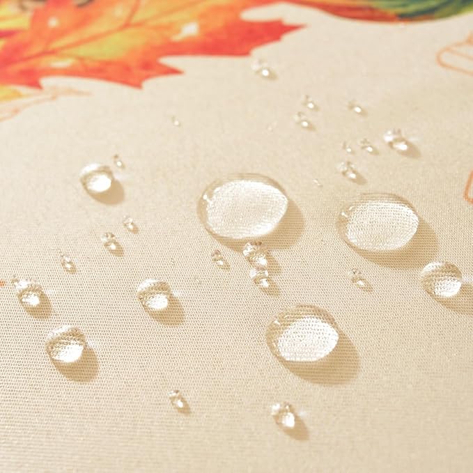 - SPILLPROOF TABLECLOTH: This Thanksgiving table cloths is polyester fabric with spill-proof treatment, any liquid is easy to cleaning, besides it is also not easy to fade, sturdy and durable enough that won't easily fray after long term use