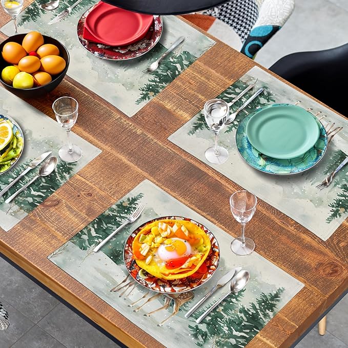 - [Versatile Occasions]: Winter place mats for tables are suitable for different occasions and are an excellent decorative mat for any indoor or outdoor setting, such as kitchens, dining tables, hotels, restaurants, coffee shops, and business offices. They are also a beautiful decoration for banquets, dinners, receptions, housewarming, family gatherings, parties, and leisure kitchens. This will definitely leave a deep impression on the guests.